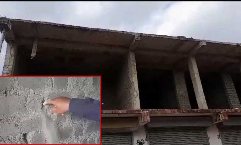 घटिया निर्माण का आलम – नई बनी इन दुकानों की दीवारों पर उंगलियों को रगड़ने से ही बड़ी आसानी से झड़ जा रहे प्लास्टर