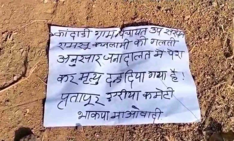 पुलिस मुखबिरी का आरोप में कंदाड़ी गांव के उप सरपंच उपसरपंच रामसू कचलामी की जन अदालत लगाकर हत्या कर दी. नक्सलियों ने बाकायदा पर्चा जारी कर हत्या की जिम्मेदारी ली.