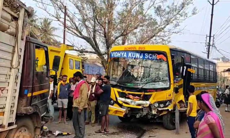स्कूल बस और ट्रक की टक्कर, ड्राइवर समेत बड़ी संख्या के बच्चे हुए घायल, हादसे के बाद मची अफरा-तफरी