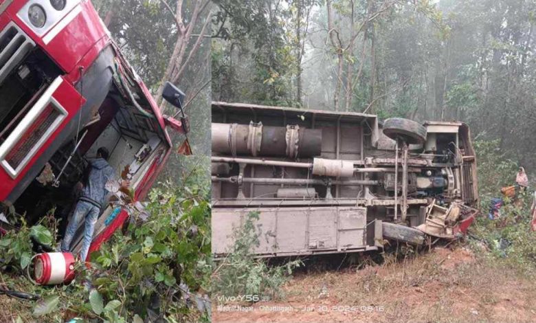 जानकारी के अनुसार, छत्तीसगढ़ के बालोद जिले से श्रद्धालुओं को लेकर मंगलम बस वृंदावन जा रही थी. इस दौरान बलरामपुर जिले के खरहरा नदी के समीप वाड्रफनगर पुलिस चौकी के अंतर्गत विजिबिलिटी कम होने के कारण विपरीत दिशा से आ रही वाहन के कारण टूरिस्ट बस जा पलटी. हादसे में बस में सवार कुछ लोगों को हलकी-फुलकी चोट लगी है. सभी घायलों का प्रारंभिक इलाज वाड्राफनगर के सिविल अस्पताल में कराया जा रहा है.