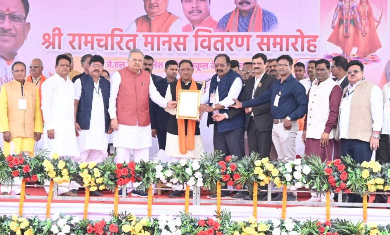 इस मौके पर मुख्यमंत्री विष्णु देव साय ने श्रीराम की जयकार के साथ अपने संबोधन की शुरूआत की। उन्होंने कहा कि मैं कांकेर सांसद मोहन मंडावी को रामायणी सांसद कहूँगा। उन्हें हीरो कहूँगा, उन्होंने मानस वितरण को लेकर बहुत अच्छा काम किया है। अपने संबोधन में उन्होंने कहा कि मुख्यमंत्री बनने के बाद पहली बार बालोद आया, आपकी आत्मीयता के लिए आपका स्वागत करता हूँ। आज यहां 173 करोड़ रुपए से अधिक राशि का लोकार्पण भूमिपूजन किया। श्री मंडावी 2002 से मानस वितरण का कार्य कर रहे हैं। आज उन्होंने 3000 प्रतियां वितरित कर 51 हजार मानस वितरित करने का का पूरा कर लिया है। इससे पहले वे 48 हजार मानस वितरित कर चुके हैं। इसे गोल्डन बुक आफ वर्ल्ड रिकार्ड में दर्ज किया है। मुख्यमंत्री ने कहा कि मंडावी ने अपना ही नहीं, छत्तीसगढ़ का नाम रोशन किया है। उन्होंने 51 हजार परिवारों में मानस पहुंचाने का काम किया है। साथ ही हर घर तुलसी चौरा हो, इसके लिए भी उन्होंने लोगों को प्रोत्साहित किया है। यह बहुत अच्छा काम है। राम चरित मानस के वितरण से बेहतर समाज के निर्माण की दिशा तय होती है। इस महती कार्य के लिए मंडावी को बधाई देता हूँ। यह कार्य ऐसे शुभ समय में हो रहा है जब 22 तारीख को अयोध्या धाम में श्रीराम की प्राणप्रतिष्ठा होने वाली है। चारों ओर उत्सव का माहौल है। मकर संक्रांति से 22 जनवरी तक मंदिरों में साफसफाई का काम हम लोग कर रहे हैं। मुख्यमंत्री ने कहा कि हमारा सौभाग्य है कि छत्तीसगढ़ श्रीराम का ननिहाल है। हमने अयोध्या सुगंधित चावल भेजा है। हमारे डाक्टर भी अयोध्या गये हैं ताकि श्रद्धालुओं की सेवा कर सके। छत्तीसगढ़ में बहुत गहरी खुशी इस अवसर को लेकर है। हमारी सरकार मोदी की गारंटी को पूरा करने कृतसंकल्पित है। मुझे यह बताते हुए हर्ष हो रहा है कि हमने सरकार बनते ही अठारह लाख से अधिक आवास स्वीकृत किये। सरकार बनने के अगले दिन ही हमने यह कार्य कर दिया। दो साल का बोनस भी हमने किसानों को दिया है। पीएससी 2021 में आई शिकायतों की जांच भी सीबीआई करेगी। 21 क्विंटल प्रति एकड़ धान हम खरीद रहे हैं। 3100 रुपए प्रति क्विंटल हम धान खरीद रहे हैं। महतारी वंदन योजना के अंतर्गत महिलाओं की खाते में शीघ्र ही राशि अंतरित की जाएगी। हम सभी मानस मंडलियों को सम्मानित करने का काम भी कर रहे हैं। विधानसभा अध्यक्ष डा. रमन सिंह ने कार्यक्रम में कहा कि अयोध्या धाम में भव्य श्रीराम मंदिर में रामलला की प्राण प्रतिष्ठा है। यह हम सबके लिए गौरव का दिन है। तुलसी मानस प्रतिष्ठान सांसद श्री मोहन मंडावी ने मानस वितरण का जो कार्य किया है। वो बहुत प्रशंसनीय है। मानस मंडलियों द्वारा श्रीराम के आदर्शों का जिस तरह प्रचार किया जा रहा है। वह प्रशंसनीय है। कांकेर सांसद श्री मोहन मंडावी 