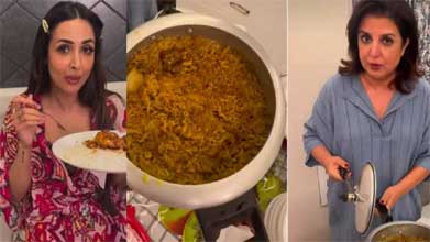 बता दें कि वो अक्सर ही सेट पर घर से आए खाने का वीडियो सोशल मीडिया पर शेयर करती हैं. एक बार फिर से उनका एक ऐसा ही फूड वीडियो इंटरनेट पर वायरल हो रहा है. वीडियो में वो कूकर में रखी बिरयानी अपने दोस्तों के साथ शेयर करती दिखाई दे रही हैं. वीडियो की शुरुआत होती है फराह खान (Farah Khan) से जिसमें वो एक कुकर को खोल रही हैं और बोलती हैं कि आज आया है मेरे घर से मेरा वर्ल्ड फेमस यकिनी पुलाव, मलाइका मैडम का फेवरेट. रित्विक तू सिर्फ चावल खाना. इसके बाद कैमरा जाता है रोस्ट चिकन से भरे एक डिब्बे पर. वो मलाइका से पूछती हैं कि क्या में इसे तुम्हारे लिए सर्व करूं. इसके बाद वो मलाइका से कहती हैं क्या हुआ तुम आज बच्चन साहब की तरह क्यों बोल रही हो. इसके बाद मलाइका और रित्विक आपस में बात करते हुए दिखते हैं. खाने की टेबल पर इसके अलावा बूंदी का रायता भी नजर आ रहा है. ये सब देखकर साफ है कि ये सभी आज फुल ऑन खाने के मजे लेने वाले हैं. बता दें कि फराह खान (Farah Khan) इसके पहले भी इस तरह का वीडियो शेयर कर चुकी हैं. फराह खान (Farah Khan) ने अपने इंस्टाग्राम पर एक वीडियो शेयर किया है, जिसमें वो घर से बने खाने की दावत के मजे ले रही हैं. इस वीडियो में उनके साथ मलाइका अरोड़ा, गौहर खान और जावेद जाफरी भी नजर आ रहे हैं.
