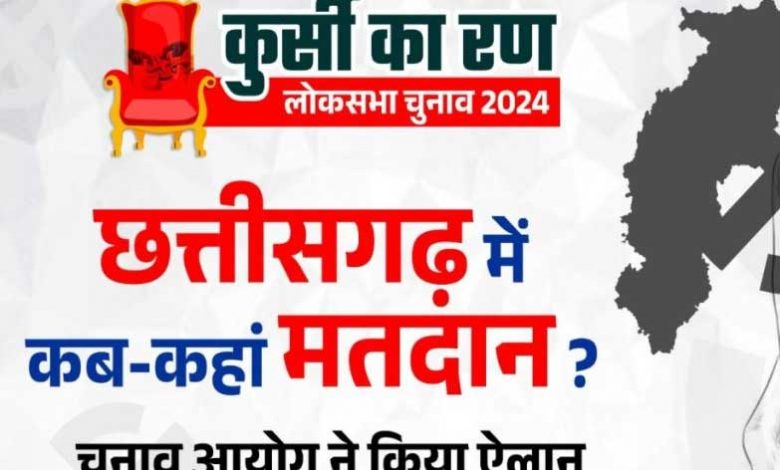 रायपुर. भारत निर्वाचन आयोग ने लोकसभा चुनाव 2024 के लिए तारीखों का ऐलान कर दिया है. जिसके मुताबिक छत्तीसगढ़ में 3 चरण में चुनाव होंगे. वहीं चुनाव के नतीजे 4 जून को आएंगे. चुनाव आयोग के मुताबिक पहले चरण का चुनाव 19 अप्रैल, दूसरे चरण का चुनाव 26 अप्रैल और तीसरे चरण का चुनाव 07 मई को होंगे.