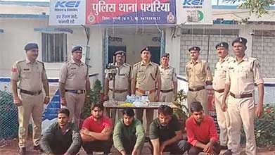 मौके पर दबिश के दौरान नारायण राजपूत पिता कमलेश (27 वर्ष) और उत्तर प्रदेश के हमीरपुर निवासी जाकिर खान पिता कादर खान (48 वर्ष) के साथ उत्तर प्रदेश निवासी सुरेंद्र कुमार सिंह पिता रतन (24 वर्ष), महेंद्र वर्मा पिता उमेश वर्मा (20 वर्ष) और मध्यप्रदेश निवासी राजेंद्र खंडकर पिता लल्लू खंडकर (19 वर्ष) को अवैध रूप से देसी प्लेन शराब बनाते हुए हिरासत में लिया.