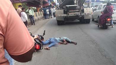 तेज रफ्तार मिक्सर मशीन ने बाइक सवार युवक को अपनी चपेट में ले लिया, हादसे में युवक की मौत
