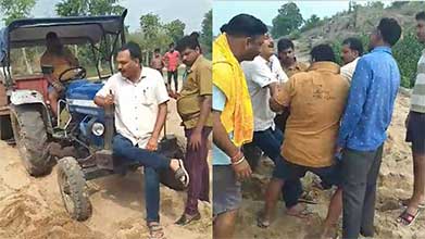 भाजपा नेता ने बीच नदी में रोक दिया कांग्रेस नेता का ट्रैक्टर, रेत उत्खनन और परिवहन को लेकर घमासान,