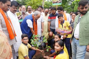 : ‘एक पेड़ मां के नाम’ अभियान के तहत रायपुर सांसद श्री बृजमोहन अग्रवाल ने शनिवार को राजधानी के डीडी नगर स्थित केंद्रीय विद्यालय नंबर दो में अपनी मां के सम्मान में पौधारोपण किया।