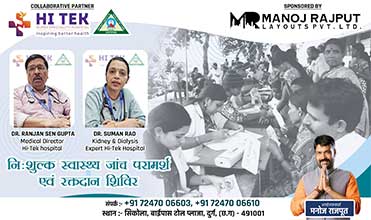 दुर्ग भिलाई के निवासियों के लिए एक अद्भुत अवसर! हाई टेक सुपर स्पेशलिटी हॉस्पिटल और मनोज राजपूत लेआउट्स प्राइवेट लिमिटेड मिलकर 20 जुलाई को एक निःशुल्क चिकित्सा और रक्तदान शिविर का आयोजन कर रहे हैं। यह शिविर सुबह 9 बजे से शाम 4 बजे तक, दुर्ग सिकोला बाईपास, बाफना टोलप्लाजा के पास मनोज राजपूत लेआउट्स के कैंपस में आयोजित होगा। इस शिविर में सभी के लिए निःशुल्क ईसीजी जांच की व्यवस्था की गई है।