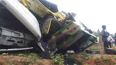 भरी बस और ट्रेलर में जबरदस्त भिड़ंत, 20 फीट गहरी खाई में गिरे दोनों वाहन, कई घायल