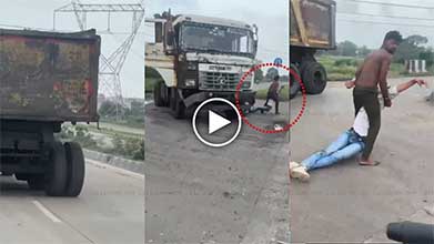 ट्रेलर ने छात्र को मारी टक्कर, गाड़ी के नीचे फंसी बाइक, सड़क किनारे छोड़ ड्राइवर और हेल्पर हुए फरार