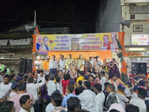 श्री बृजमोहन अग्रवाल ने राम भक्तों और रामायण मानस मंडलियों पर पुष्प वर्षा कर उनका स्वागत किया। साथ ही श्रीफल भी भेंट किया।