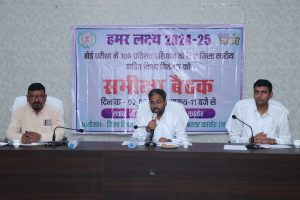 जिला पंचायत के सीईओ श्री सुमीत अग्रवाल ने कोर कमेटी के सभी सदस्यों को मिशन मोड में कार्य करने हेतु प्रेरित किया और कार्ययोजना को जिले में तत्काल लागू करने को कहा। बैठक में जिला शिक्षा अधिकारी श्री अशोक पटेल ने हमर लक्ष्य के बिन्दुओं के बारे में विस्तार से जानकारी दी। उन्होंने सदस्यों को माह सितम्बर से दिसम्बर तक की कार्ययोजना को मूर्त रूप देने हेतु निर्देशित किया। साथ ही यह भी बताया कि सभी विद्यालय 15 दिसम्बर 2024 तक पाठयक्रम पूर्ण करेंगे, दिसम्बर माह में अर्धवार्षिक परीक्षा एवं जनवरी माह में प्री बोर्ड वार्षिक परीक्षा आयोजित किए जाएगी। उल्लेखनीय है कि बोर्ड कक्षाओं में और बेहतर प्रदर्शन के लिए मासिक, त्रैमासिक टेस्ट, अर्धवार्षिकी एवं प्रीबोर्ड परीक्षा प्रश्न पत्र तैयार कर उपलब्ध कराने के उद्देश्य से जिला स्तरीय कोर कमेटी का गठन किया गया है।
