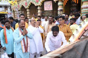 रायपुर । राजधानी रायपुर के राजेन्द्र नगर स्थित जय बूढ़ी मां मंदिर से नुआखाई का भव्य शोभायात्रा निकाली गयी जिसे भाजपा प्रदेश संगठन महामंत्री पवन साय एवं विधायक पुरन्दर मिश्रा ने हरी झंडी दिखा कर रवाना किया। उक्त शोभा में चल यात्रियों को मुख्यमंत्री निवास के पास गौरैया चैक में उत्कल गाड़ा समाज द्वारा पुष्पगुच्छ भेंट कर स्वागत अभिनंदन करते हुए प्रसाद वितरण किया गया।