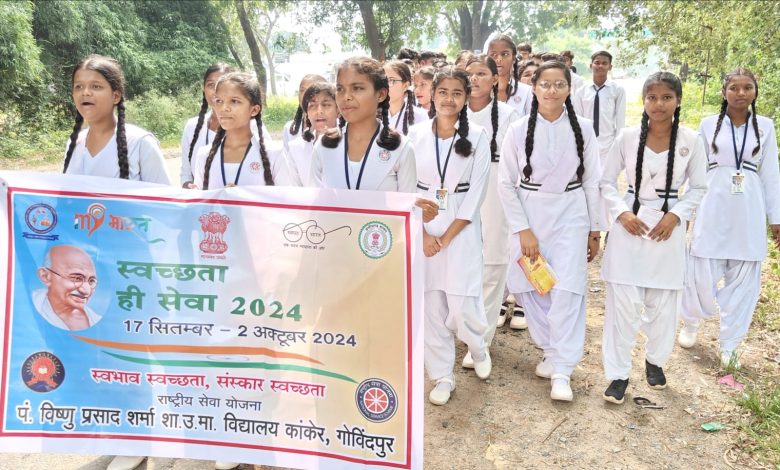 उत्तर बस्तर कांकेर 21 सितंबर 2024/ भारत सरकार युवा कार्यक्रम और खेल मंत्रालय राष्ट्रीय सेवा योजना के महत्वाकांक्षी कार्यक्रम “स्वभाव स्वच्छता, संस्कार स्वच्छता” 2024 के अंतर्गत राष्ट्रीय सेवा योजना की इकाई पंडित विष्णु प्रसाद शर्मा शा. उ.मा. विद्यालय गोविंदपुर में स्वच्छता कार्यक्रम आयोजित किया गया।
