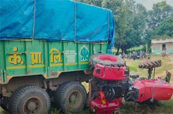 ट्रक की चपेट में आने से उड़े ट्रैक्टर के परखच्चे, गंभीर रूप से घायल हुआ ड्राइवर, इलाज के लिए परिवार ने बनाया बंधक