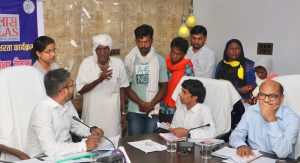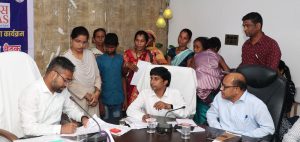उत्तर बस्तर कांकेर, 15 अक्टूबर 2024/कलेक्टर श्री निलेश कुमार महादेव क्षीरसागर ने आज जिला कार्यालय में आयोजित साप्ताहिक जनदर्शन में आवेदकों की समस्याएं सुनीं और उनके निराकरण हेतु संबंधित अधिकारियों को निर्देशित किया। आज आयोजित कलेक्टर जनदर्शन में स्वास्थ्य केन्द्र में एमबीबीएस डॉक्टर की नियुक्ति करने, कोड़ेजुंगा बाईपास चौराहा में लाईट व्यवस्था कराने, उचित मूल्य दुकान में मिलने वाले गुड़ तथा चना की गुणवत्ता में सुधार लाने, नलजल योजना चालू करवाने सहित विभिन्न प्रकार की मांगों व समस्याओं से संबंधित कुल 71 आवेदन जिले के आवेदकों से प्राप्त हुए।