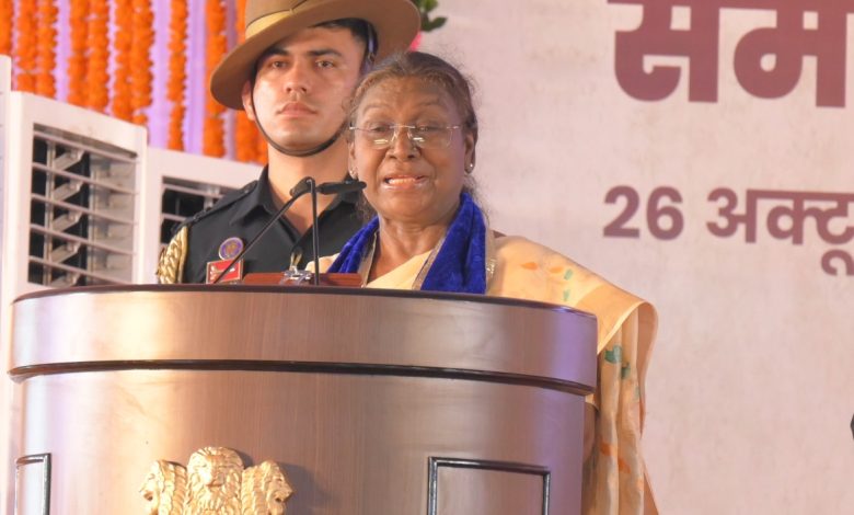 रायपुर, 26 अक्टूबर 2024/ राष्ट्रपति श्रीमती द्रोपदी मुर्मु आज अपने छत्तीसगढ़ प्रवास के दूसरे दिन पंडित दीनदयाल उपाध्याय स्मृति स्वास्थ्य विज्ञान एवं आयुष विश्वविद्यालय के तृतीय दीक्षांत समारोह के अवसर पर वर्ष 2047 तक भारत को विकसित राष्ट्र बनाने में विकसित छत्तीसगढ़ का बहुत महत्वपूर्ण योगदान होगा। समग्र विकास के लिए नागरिकों का अच्छा स्वास्थ्य महत्वपूर्ण होता है। अच्छा स्वास्थ्य लोगों की उत्पादकता और रचनात्मकता को बढ़ाने में सहायक होता है। राष्ट्रपति श्रीमती मुर्मु ने पंडित दीनदयाल उपाध्याय स्मृति स्वास्थ्य विज्ञान एवं आयुष विश्वविद्यालय के तृतीय दीक्षांत समारोह शामिल होकर संस्थान के 25 विद्यार्थियों को 33 स्वर्ण पदक एवं 6 विद्यार्थियों को सुपर स्पेशलिस्ट की उपाधि प्रदान की।