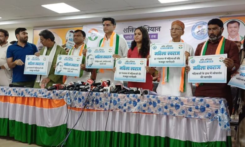 रायपुर/06 नवंबर 2024। प्रदेश कांग्रेस प्रभारी सचिन पायलट ने कांग्रेस भवन में प्रदेश कांग्रेस अध्यक्ष दीपक बैज, नेता प्रतिपक्ष डॉ.चरणदास महंत की उपस्थिति में पत्रकारवार्ता को संबोधित किया। पत्रकारवार्ता के पहले उन्होंने युवा कांग्रेस द्वारा महिलाओं की पंचायत चुनावों में सक्रिय भागीदारी के लिये चलाये जा रहे अभियान महिला स्वराज अभियान का भी शुभारंभ किया। उन्होने कहा कि राहुल गांधी की सोच है कि महिलाओं को कैसे आगे बढ़ाना है। ग्राउंड लेवल से लेकर पार्लियामेंट तक जो महिलाएं इच्छुक है चुनाव लड़ने की उनके लिए है यह अभियान है।