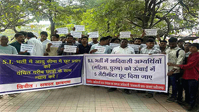 रायपुर। छत्तीसगढ़ में एसआई भर्ती में युवाओं ने उंचाई और उम्र की सीमा में छूट की मांग की है. दरअसल, आदिवासी अभ्यार्थियों की हाइट औमतौर पर कम ही होती है, जिसके कारण भर्ती से वंचित हो जाते हैं, इसीलिए वर्तमान जारी भर्ती में पांच सेंटीमीटर छूट की मांग की गई है. इसे लेकर युवाओं ने गृहमंत्री विजय शर्मा को ज्ञापन सौंपा है. वहीं मांग नहीं मानने पर युवाओं ने उग्र प्रदर्शन की चेतावनी भी दी है.बता दें कि छत्तीसगढ़ में 2018 और 2021 की भर्ती में छूट दी गई थी. हांलाकि इस बार जारी एसआई भर्ती में छूट नहीं दी गई हैं. वर्तमान जारी एसआई भर्ती में सभी वर्ग के लिए 168 सेंटीमीटर हाइट निर्धारित की गई है. जहां पड़ोसी राज्य झारखंड, उत्तर प्रदेश, बिहार, ओडिशा, राजस्थान और मध्य प्रदेश, इन सभी राज्यों में छूट दी गई है. वहीं आदिवासियों के लिए अन्य राज्य में पुरुषों के लिए 160 सेंटीमीटर और महिलाओं के लिए 148 सेंटीमीटर छूट निर्धारित है.