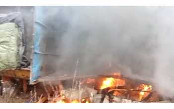 नेशनल हाईवे सड़क पर ट्रक और कार की आपस में भिड़ंत ,दोनों वाहनों में लगी आग