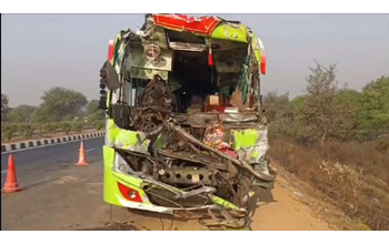 महासमुंद। सरायपाली के घंटेश्वरी मंदिर के समीप नेशनल हाइवे 53 पर आज अलसुबह यात्री बस खड़े ट्रक से जा टकराई. दुर्घटना में बस में सवार छह माह की दुधमुंही बच्ची की मौत हो गई, वहीं 43 यात्रियों को चोट आई है, जिनमें से 19 लोगों की हालत गंभीर है.जानकारी के अनुसार, बस क्रमामक CG 23 N 2400 दुर्ग से पुरी जा रही थी. रास्ते में सुबह करीबन चार बजे सरायपाली के घंटेश्वरी मंदिर से करीबन 200 मीटर की दूरी पर खड़े ट्रक से बस जा भिड़ी. दुर्घटना के तुरंत बाद यात्रियों की चीख-पुकार शुरू हो गई