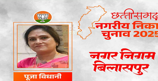 बिलासपुर नगर निगम (Bilaspur Municipal Corporation) में पांच साल बाद भाजपा की वापसी हो गई है. विपरित परिस्थितियों के बावजूद यहां पर भाजपा प्रत्याशी पूजा विधानी ने जीत दर्ज कर ली है. उन्होंने कांग्रेस के प्रमोद नायक को 66 हजार से ज्यादा वोटों से मात दी है. MA पास पूजा विधानी नगर निगम नेता प्रतिपक्ष अशोक विधानी की पत्नी हैं. वे 1996 से भाजपा की सक्रिय सदस्य हैं. 1998 में पहली बार पार्षद बनीं थी. महिला मोर्चा में 2 बार प्रदेश महामंत्री रही हैं.