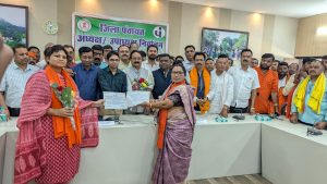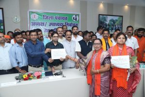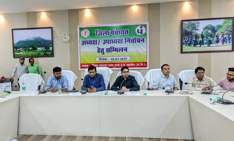 उत्तर बस्तर कांकेर, 05 मार्च 2025/ त्रिस्तरीय पंचायत आम निर्वाचन-2025 के अंतर्गत जिला पंचायत कांकेर के अध्यक्ष एवं उपाध्यक्ष पद हेतु निर्वाचन कार्यक्रम आज जिला पंचायत के सभाकक्ष में सम्मिलन सम्पन्न हुआ। प्राप्त जानकारी के अनुसार जिला पंचायत के सभी 13 निर्वाचित सदस्यों में से अध्यक्ष पद हेतु श्रीमती किरण नरेटी और श्रीमती झरना धु्रव ने नामांकन फॉर्म भरा, जिसमें सभी सदस्यों के द्वारा किए गए वोट के आधार पर श्रीमती किरण को 10 और श्रीमती झरना को 03 वोट प्राप्त हुए। इस प्रकार श्रीमती किरण नरेटी को बहुमत के आधार पर जिला पंचायत अध्यक्ष पद के लिए निर्वाचित मानते हुए उन्हें प्रमाण-पत्र प्रदाय किया गया। इसी प्रकार जिला पंचायत उपाध्यक्ष हेतु श्रीमती ताराबती ठाकुर और श्रीमती सुलोचना मेश्राम ने नामांकन फॉर्म भरा था। वोटिंग के उपरांत श्रीमती ताराबती को 09 और श्रीमती सुलोचना को 04 वोट प्राप्त हुए। इस प्रकार बहुमत के आधार पर उपाध्यक्ष पद हेतु श्रीमती ताराबती ठाकुर को निर्वाचित कर उन्हें प्रमाण-पत्र दिया गया। उक्त निर्वाचन प्रक्रिया जिला पंचायत के सीईओ श्री हरेश मंडावी, पीठासीन अधिकारी एवं एसडीएम कांकेर श्री अरूण वर्मा तथा सहायक पीठासीन अधिकारी एवं उप संचालक पंचायत श्री कमल सिदार की उपस्थिति में सम्पन्न हुआ।