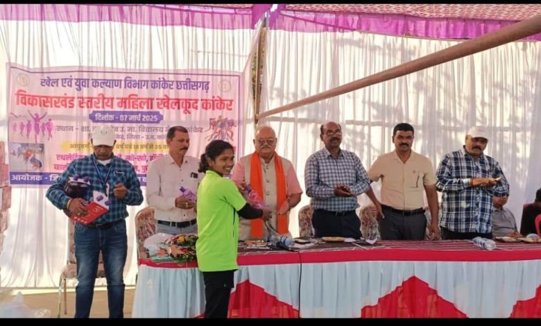 उत्तर बस्तर कांकेर, 07 मार्च 2025/ खेल एवं युवा कल्याण विभाग द्वारा आयोजित विकासखंड स्तरीय महिला खेल प्रतियोगिता का आयोजन आज नरहरदेव खेल मैदान में संपन्न हुआ। जिला खेल अधिकारी ने बताया कि बालिकों के लिए 9 से 18 वर्ष एवं महिलाओं के लिए 18 से 35 आयु वर्ष में खेल आयोजित किया गया। इस आयोजन में एथलेटिक्स ,रस्साकस्सी, खो-खो, हॉकी, बैडमिंटन, वॉलीबॉल, कुश्ती, वेटलिफ्टिंग एवं फुटबॉल खेल को शामिल किया गया। समापन अवसर पर मछुआ कल्याण बोर्ड के पूर्व अध्यक्ष श्री भारत मटियारा उपस्थित रहे। उन्होंने कहा कि 08 मार्च महिला दिवस हेतु इस आयोजन को महिलाओं का सम्मान बताया, साथ ही कहा कि ऐसा आयोजन जिले के ग्रामीण एवं शहरी महिलाओं में छिपी प्रतिभाओं का सम्मान करते हुए अच्छा प्लेटफार्म प्रदान करना है। प्रतियोगिता में विजय खिलाड़ियों को मुख्य अतिथि द्वारा पुरस्कृत किया गया।