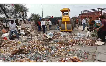 अवैध शराब पर चला बुलडोजर, 10 साल पुराने मामले में जब्त 40 हजार लीटर मदिरा को पुलिस ने किया नष्ट