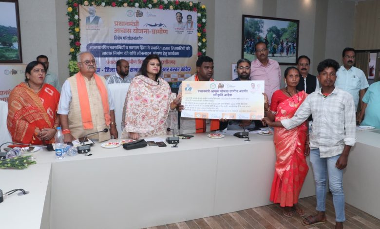 जिला पंचायत में आज दोपहर 01 बजे आयोजित वर्चुअल कार्यक्रम में मुख्यमंत्री श्री साय ने हितग्राहियों को बधाई देते हुए कहा कि प्रधानमंत्री श्री नरेन्द्र मोदी ने देशवासियों के लिए आवास प्लस योजना से लाभान्वित करने का जो निर्णय लिया है, वह कारगर साबित हो रही है। उन्होंने विशेष परियोजनांतर्गत आत्मसमर्पित नक्सलियों व नक्सल हिंसा से प्रभावित हितग्राहियों को आवास निर्माण की प्रथम किश्त की राशि जारी की है। उन्होंने लाभान्वित हितग्राहियों से चर्चा करते हुए आवास निर्माण कार्य को जल्द प्रारंभ करने के लिए शुभकामनाएं दी।
