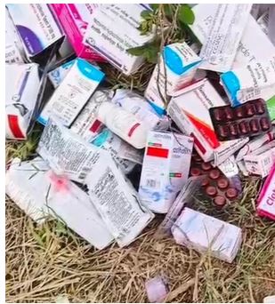 नाले में फेंकी गई दवाइयां: सरकारी दवाइयों को मरीजों को देने के बजाय नाले में फेंक दिया गया, जिससे हड़कंप मच गया