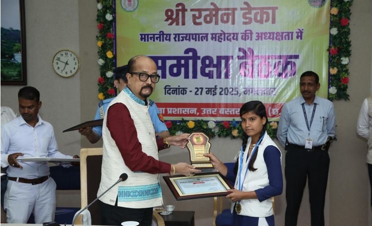 राज्यपाल श्री रमेन डेका समीक्षा बैठक के उपरांत माध्यमिक शिक्षा मण्डल द्वारा आयोजित 10वी एंव 12वीं बोर्ड परीक्षा की प्रावीण्य सूची में स्थान बनाने  वाले विद्यार्थियों को सम्मानित किया।  बोर्ड परीक्षा में कक्षा 12वीं में विकासखण्ड कांकेर  के अखिल सेन ने 98.20 प्रतिशत और पखांजूर तहसील  की इशिका बाला ने कक्षा 10वीं में 99.16 प्रतिशत अंक प्राप्त कर राज्य स्तरीय टॉप टेन में स्थान बनाकर जिले को गौरवान्वित किया है। राजपाल ने इन मेधावी विद्यार्थियों को बधाई एवं शुभकामनाएं दी।