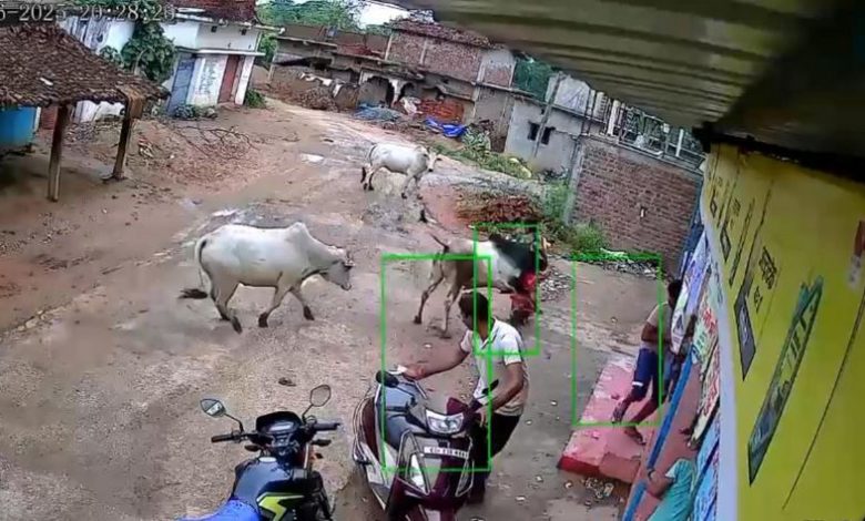 गरियाबंद। गरियाबंद जिले के मैनपुर ब्लॉक के ग्राम सारनाबहाल में रविवार को सांड के हमले से एक महिला की दर्दनाक मौत हो गई। यह घटना उस समय हुई जब महिला बाजार से घर लौट रही थी और रास्ते में दो सांड आपस में लड़ रहे थे। उसी दौरान एक सांड ने महिला पर हमला कर दिया। यह पूरी घटना एक राहगीर के मोबाइल कैमरे में कैद हो गई, जो अब वायरल हो रही है।