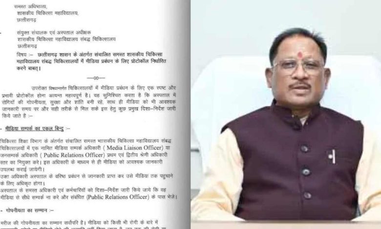 रायपुर. सरकारी अस्पतालों में मीडिया कवरेज पर प्रतिबंध लगाने संबंधी आदेश सरकार ने वापस ले लिया है. स्वास्थ्य विभाग की ओर से जारी इस आदेश पर मुख्यमंत्री विष्णुदेव साय ने कड़ी नाराजगी व्यक्त की और भविष्य में ऐसी स्थिति निर्मित ना हो इसे सुनिश्चित करने कड़ा संदेश दिया है. सूत्रों की माने तो इस आदेश के संज्ञान में आते ही मुख्यमंत्री ने प्रशासनिक स्तर पर अविलंब इसे रद्द करने के निर्देश दिए हैं.