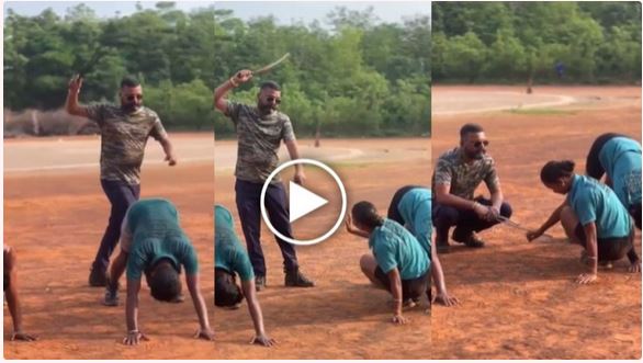 वायरल वीडियो में देखा जा सकता है कि एक पुरुष ट्रेनर एक लाइन से युवकों और युवतियों पर पट्टे से वार कर रहा है। इसमें एक युवती मार की डर से ट्रेनर से गिड़गिड़ाती नजर आ रही है। इस बर्बरता का वीडियो सोशल मीडिया पर तेजी से वायरल हो रहा है।