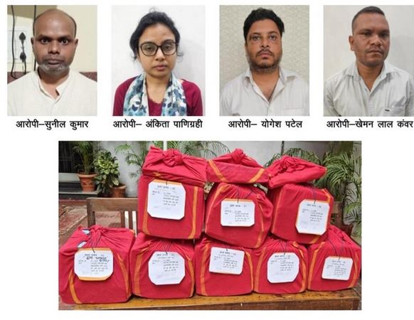 विशेष न्यायालय में भ्रष्टाचार और आपराधिक षड्यंत्र के तहत आरोप पत्र दाखिल कर दिया गया है। फोटो में चारों आरोपियों के साथ चालान के दस्तावेजों के बंडल भी प्रदर्शित किए गए हैं।
