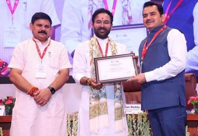 रायपुर. भारत सरकार के खान मंत्रालय, नई दिल्ली द्वारा छत्तीसगढ़ राज्य को जिला खनिज संस्थान न्यास (DMF) के अंतर्गत उल्लेखनीय कार्यों के लिए राष्ट्रीय स्तर पर सम्मानित किया गया है। आज नई दिल्ली स्थित स्कोप कन्वेंशन सेंटर में आयोजित एक दिवसीय “नेशनल डीएमएफ वर्कशॉप” के दौरान केंद्रीय कोयला एवं खान मंत्री श्री जी किशन रेड्डी ने मुख्यमंत्री के सचिव और खनिज सचिव श्री पी. दयानंद को प्रशस्ति पत्र देकर सम्मानित किया।
