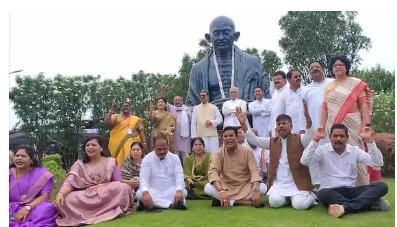 कांग्रेस का विधानसभा में प्रदर्शन: खाद संकट के मुद्दे पर विधायकों ने उठाई आवाज, सरकार को घेरा