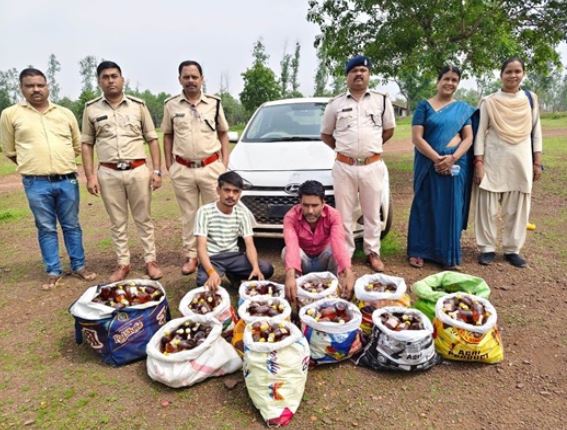 देशी मदिरा की बड़ी खेप पकड़ी गई: 135 बल्क लीटर अवैध मदिरा और एक आई-20 वाहन जब्त