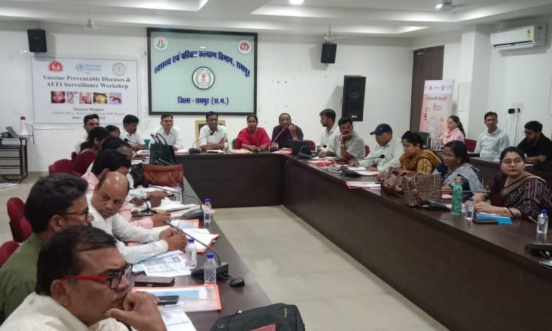 रायपुर। सीएमएचओ सभाकक्ष में सोमवार को कलेक्टर डॉ गौरव सिंह के निर्देशानुसार सर्विलेंस मेडिकल ऑफिसर (SMO), डब्लू.एच.ओ रायपुर डॉ. नितीन पाटिल के द्वारा एक दिवसीय VPD सर्विलेंस कार्यशाला का आयोजन किया गया।