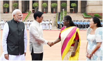 नयी दिल्ली। फिलीपींस के राष्ट्रपति फर्डिनेंड आर मार्कोस जूनियर का मंगलवार को राष्ट्रपति भवन में स्वागत किया गया।