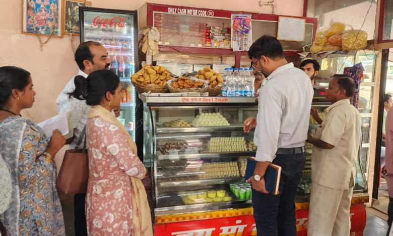इसके साथ ही जैन होटल एवं स्वीट्स, अमित स्वीट्स, जय दुर्गा स्वीट्स एवं लक्ष्मी किराना स्टोर्स से कुल 7 मिठाईयों के नमूने लेकर जांच हेतु राज्य खाद्य परीक्षण प्रयोगशाला भेजा गया साथ ही उपरोक्त दुकानों को 4-4 बिंदुओं पर नोटिस भी जारी किया गया।