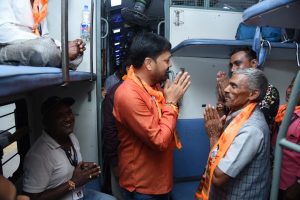 रायपुर / राजधानी रायपुर में छत्तीसगढ़ सरकार द्वारा प्रदेशवासियों की आस्था और श्रद्धा को मूर्त रूप देने हेतु प्रारंभ की गई ‘रामलला दर्शन योजना’ के अंतर्गत आज रायपुर रेलवे स्टेशन से रायपुर संभाग के श्रद्धालु विशेष ट्रेन से अयोध्या धाम के दर्शन के लिए रवाना हुए। इस पवित्र यात्रा के शुभारंभ पर धरसींवा विधायक अनुज शर्मा शामिल होकर सभी श्रद्धालुओं को हार्दिक शुभकामनाएं दीं और उनकी यात्रा के मंगलमयी होने की कामना की।