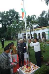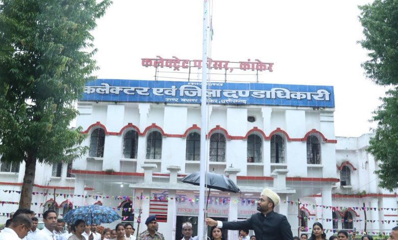 उत्तर बस्तर कांकेर, 15 अगस्त 2025/ 79वें स्वतंत्रता दिवस के अवसर पर जिले के कलेक्टर श्री निलेश कुमार महादेव क्षीरसागर ने आज सुबह 08 बजे जिला कार्यालय कांकेर में ध्वजारोहण किया। उपस्थित अधिकारियों व कर्मचारियों के द्वारा सामूहिक राष्ट्रगान गाया गया। इस दौरान कलेक्टर ने सभी कार्यालयीन स्टाफ को राष्ट्रीय पर्व स्वतंत्रता दिवस की बधाई एवं शुभकामनाएं दीं। इसके पहले, कलेक्टर श्री क्षीरसागर ने सिविल लाइन्स स्थित अपने निवास पर राष्ट्रध्वज फहराया। इस अवसर पर अपर कलेक्टर श्री जितेन्द्र कुर्रे सहित जिला कार्यालय के अधिकारी-कर्मचारी मौजूद थे।