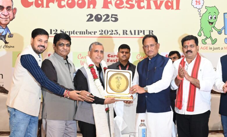इस अवसर पर मुख्यमंत्री श्री साय ने जम्मू-कश्मीर के प्रख्यात कार्टूनिस्ट श्री मनोज चोपड़ा को कार्टून वॉच पत्रिका का लाइफटाइम अचीवमेंट अवॉर्ड प्रदान किया। उन्होंने कार्टून फेस्टिवल में हिस्सा ले रहे कार्टूनिस्टों का उत्साहवर्धन करते हुए स्वयं भी कार्टून बनाया।