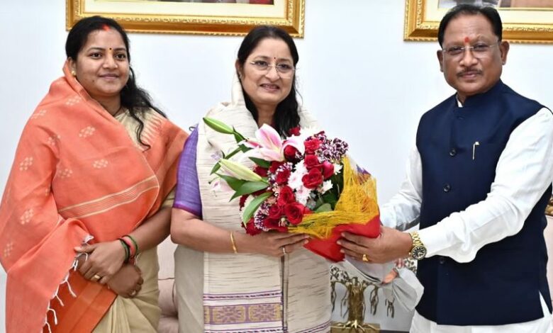 मुख्यमंत्री विष्णु देव साय से केंद्रीय महिला एवं बाल विकास मंत्री अन्नपूर्णा देवी ने की सौजन्य भेंट