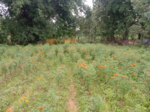 उत्तर बस्तर कांकेर, 18 सितम्बर 2025/ राष्ट्रीय ग्रामीण आजीविका मिशन (बिहान) के स्व-सहायता समूह की महिलाएं गेंदा फूल की खेती कर आजीविका संवर्धन कर आय अर्जन कर रही हैं। कलेक्टर श्री निलेश कुमार महादेव क्षीरसागर के निर्देशानुसार एवं जिला पंचायत के मुख्य कार्यपालन अधिकारी श्री हरेश मण्डावी के मार्गदर्शन में जिले के महिला स्व-सहायता समूह को राष्ट्रीय ग्रामीण आजीविका मिशन के तहत बैंक लिंकेज कर लोन के रूप में राशि प्राप्त कर गेंदा फूल की खेती करने का कार्य प्रारंभ किया है। इस संबंध में बताया गया कि उन्नत खेती करने हेतु माह मई-जून में उद्यानिकी विभाग से समन्वय कर 50 से 55 महिलाओं को प्रशिक्षण प्रदाय किया।