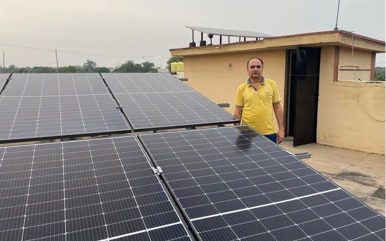 घर की छत पर बन रही बिजली से कोनी निवासी श्री सागर चौधरी का बिल हुआ आधा