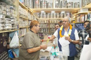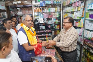 इस दौरान उन्होंने दवाई की दुकानों, शॉपिंग मॉल, मोबाइल शोरूम, इलेक्ट्रॉनिक एंड इलेक्ट्रिकल्स, दोपहिया वाहन शोरूम और कार शोरूम का भ्रमण कर दुकानदारों एवं ग्राहकों से मुलाकात की। उन्होंने खरीदारों को स्वदेशी उत्पादों के उपयोग के लिए प्रेरित किया और व्यापारियों से कर प्रणाली में पारदर्शिता बनाए रखने की अपील की।