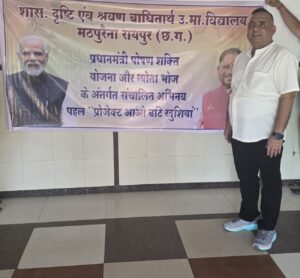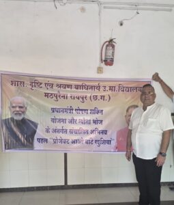 रायपुर / कार्यालय कार्यपालन अभियंता सिहावा भवन रायपुर में आज कार्यपालन अभियंता संदीप धवन जलसंसाधन संभाग रायपुर ने अपने जन्मदिवस के अवसर पर प्रधानमंत्री पोषण शक्ति योजना और नियोतभोज के अंतर्गत संचालित एक अभिनव पहल आओ बाटें खुशियां में शासकीय दृष्टि एवं मुकबधिर विद्यालय मठपुरेना बच्चों को पौष्टिक भोजन कराया और बच्चों को चॉकलेट बिस्किट वितरित किए।